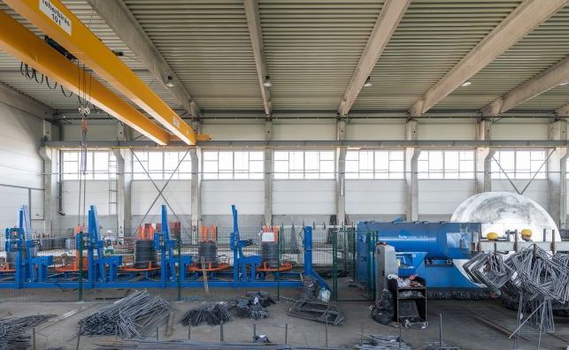 A fejlesztéssorozat során nem csupán kapacitásbővítés történt, az emelkedő igények hatására fejlesztésre került a gyártóbázis informatikai háttere is. A közelmúltban beüzemeltünk egy betonacél-gyártó gépsort, melynek segítségével mind az anyavállalat (Grabarics), mind a GVB saját kivitelezésein felmerülő monolit szerkezetépítéshez szükséges acélmennyiséget le tudjuk gyártani, emellett munkába állítottunk négy billenőasztalt és egy lépcsősablont is. A berendezések sora a nyár folyamán új feszítőpuskával és lapszabász géppel is gyarapodott, ez utóbbi a zsaluanyag megmunkálásához nyújt hatékony segítséget. A gépi fejlesztés mellett jelentős, 100 főt meghaladó saját és alvállalkozói létszámmal biztosítjuk a megrendelések időben és megfelelő minőségben történő teljesítését.
